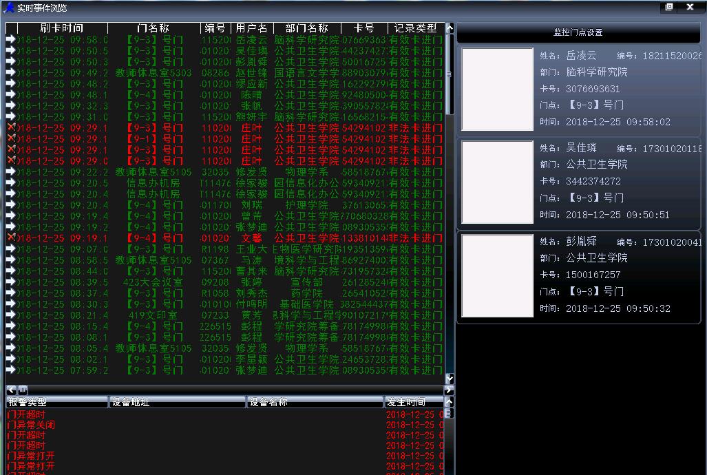 針對校方提出的關(guān)于實驗室門管控及各樓宇出入口門管控需求,經(jīng)過多方洽談,根據(jù)校方的實際需要,實現(xiàn)了以下多項功能: