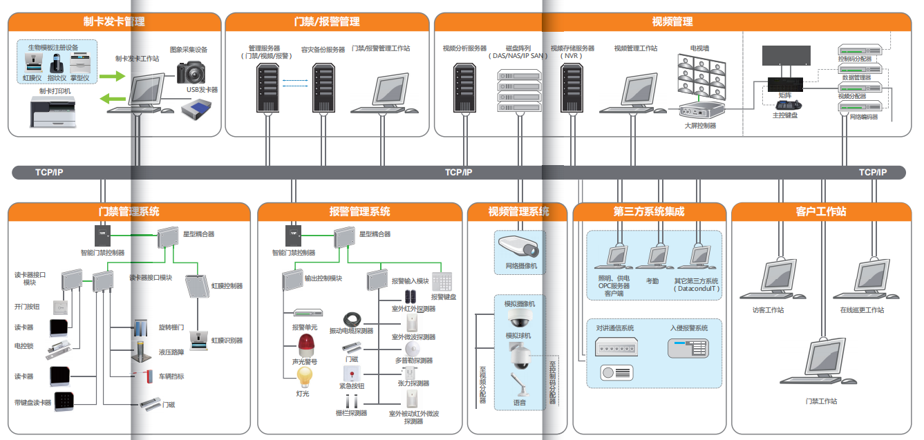 一體化集成設計,包括界面、數(shù)據(jù)、信息、第三方業(yè)務集成,實現(xiàn)了門禁、視頻、報警、廣播、對講等多個子系統(tǒng) 的整合集成和統(tǒng)一管理。