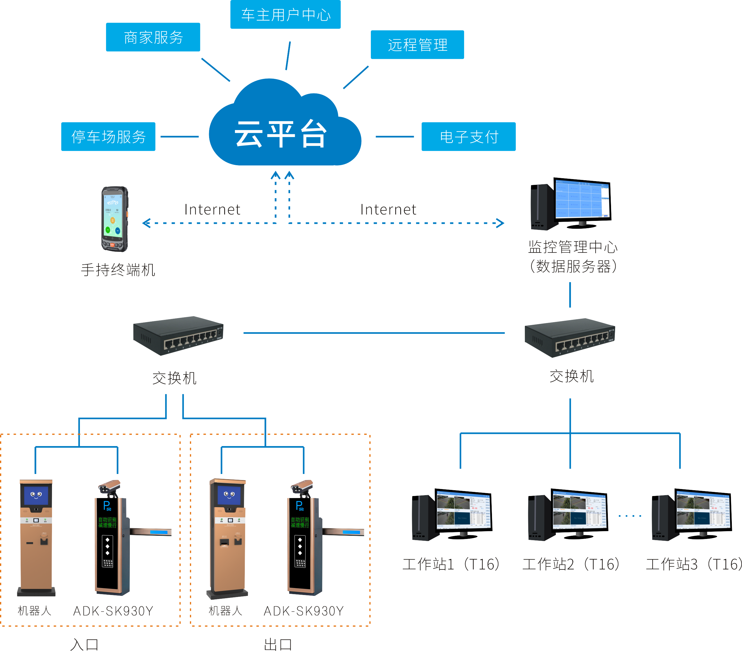 智慧停車系統(tǒng)是以“無人值守、監(jiān)控中心管理、云端統(tǒng)籌”的系統(tǒng)構(gòu)建,集先進(jìn)的車牌自動(dòng)識(shí)別技術(shù)、軟硬件融合控制技術(shù)、互聯(lián)網(wǎng)與電子支付技術(shù)以新穎的智慧停車,讓物業(yè)/車主輕松享受安全、便捷的智慧管理與通行;通過對(duì)現(xiàn)有停車場(chǎng)生態(tài)中加入“智慧停車機(jī)器人”,使停車場(chǎng)進(jìn)出通道無需保安的人工干預(yù),車輛依然可以正常進(jìn)出場(chǎng)(包括無牌車),自動(dòng)計(jì)費(fèi),車主自助繳費(fèi)離場(chǎng)。通過手持終端設(shè)備應(yīng)急處理停電、斷網(wǎng)、設(shè)備故障等特殊情況,強(qiáng)化物業(yè)對(duì)停車場(chǎng)的管控能力,從而增加停車通行效率,給停車場(chǎng)管理人員帶來便利的同時(shí)降低人工成本,杜絕收費(fèi)漏洞。