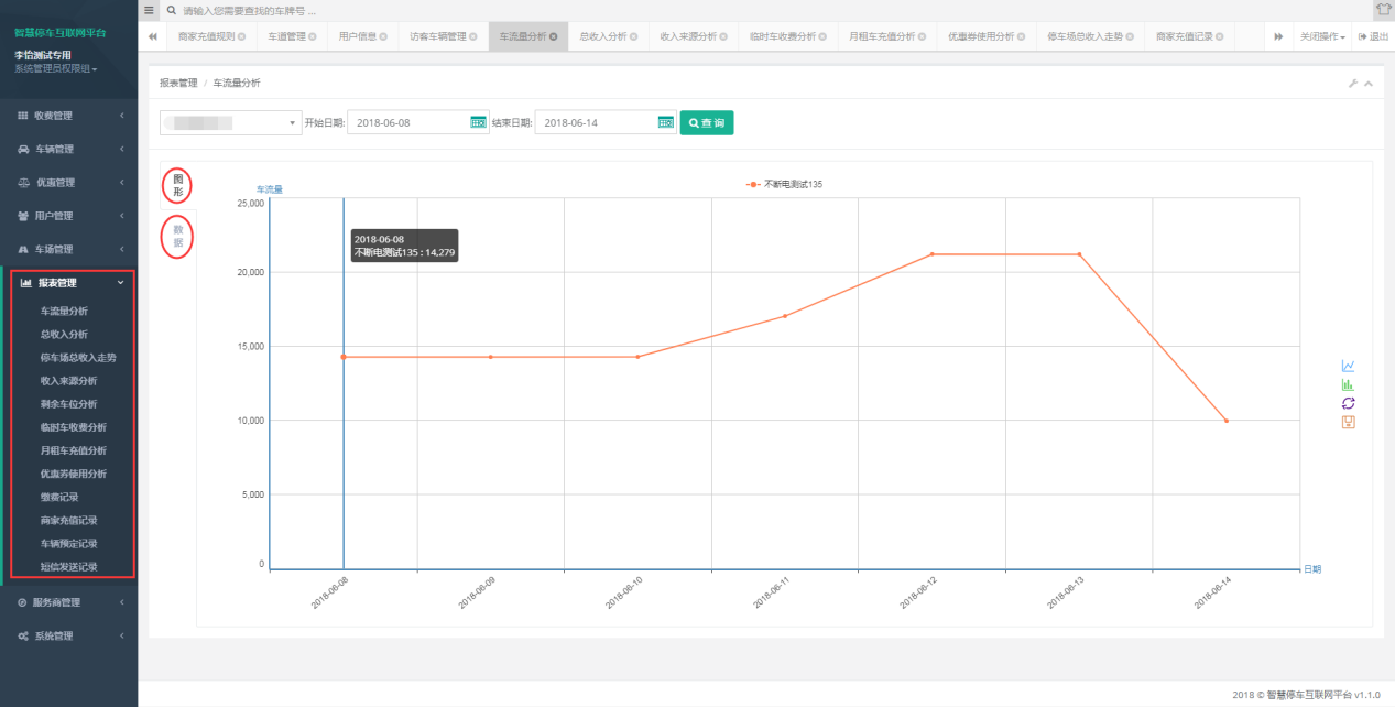 8、系統(tǒng)可提供各類車輛出入場(chǎng)報(bào)表、收費(fèi)報(bào)表的查詢,提升停車場(chǎng)的信息化功能,有效統(tǒng)計(jì)停車場(chǎng)車流、使用率等信息,便于車場(chǎng)管理單位了解停車場(chǎng)的使用狀況。
